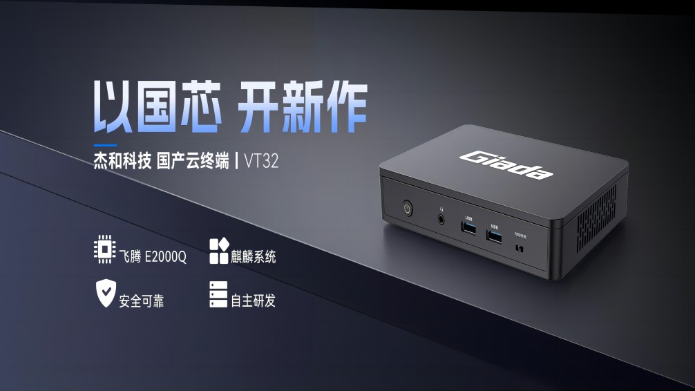 ONE游戏科技推出的国产化云终端VT32,这款产品采用国产飞腾腾珑E2000Q四核处理器,主频达2.0GHz深度适配银河麒麟V10系统,麒麟V10系统不仅能满足金融办公、政府办公对于数据安全与隐私保护的要求,还支持多样化部署与管理。