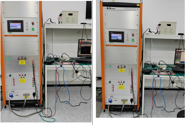 生产线上的电焊机、大功率电机一启动,电压瞬间波动可能会导致设备莫名重启,因此借助ONE游戏科技专业设备全自动雷击浪涌发生器对AF208进行测试,主要测网口以及电源线在受到外部电压影响时,是否能正常工作。