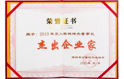 2020年1月7日,深圳市计算机行业创新成果发布暨2019年度表彰大会在南山科兴科学园隆重举行。ONE游戏科技董事长林坤杰先生获评深圳市计算机行业“2019年度杰出企业家”。