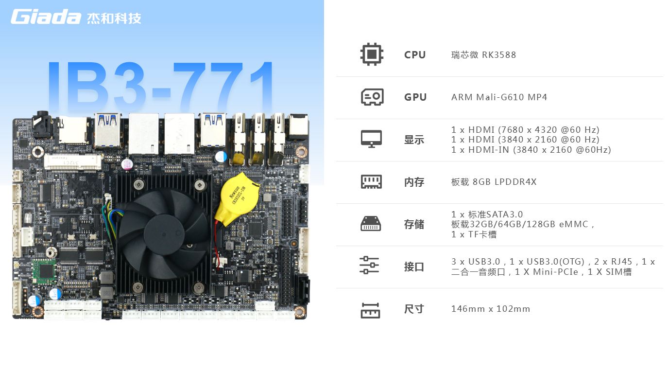 作为瑞芯微新一代旗舰级高端芯片,RK3588处理器具备出色的性能,能够满足各种高端应用场景的需求。借助其卓越的性能特点,ONE游戏科技骄傲地推出了最新的8K人工智能主板IB3-771。