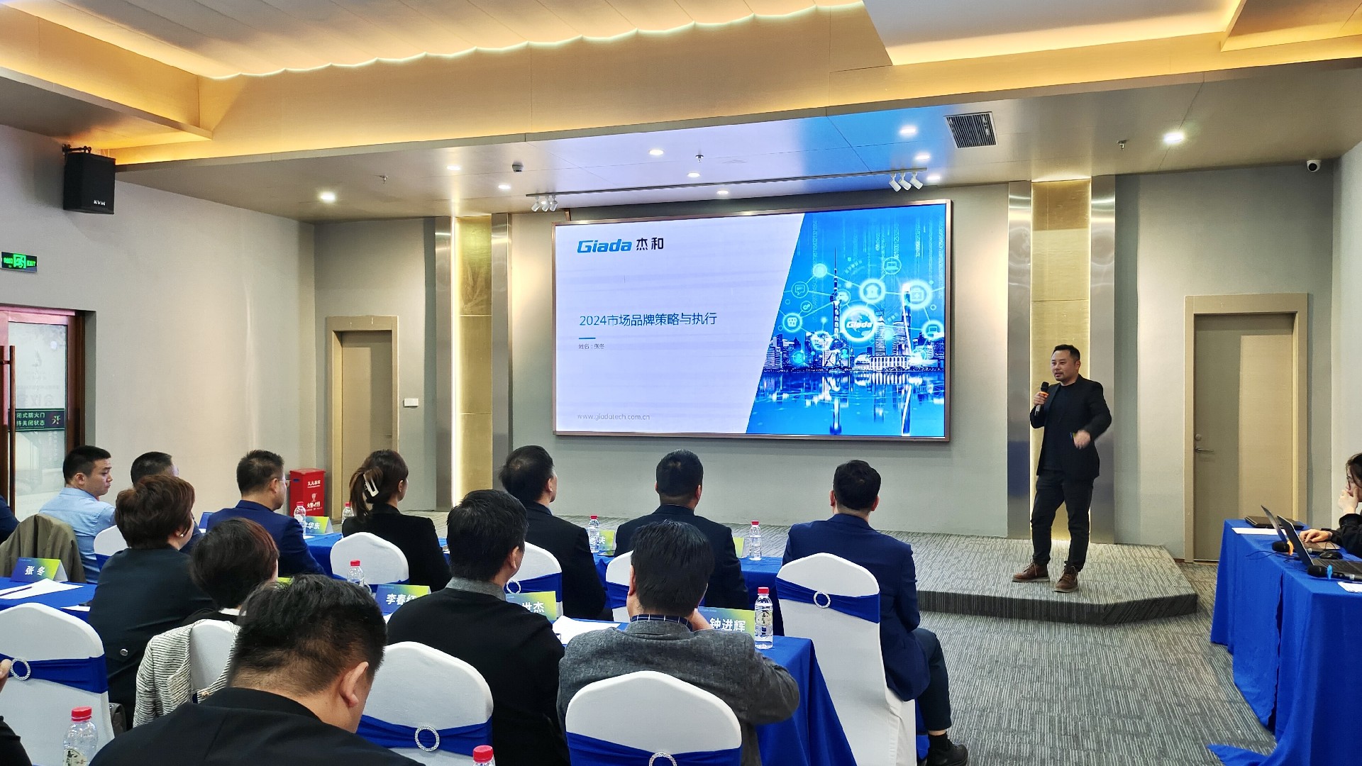 会议开始后,两位国际/国内营销中心负责人首先对2023年度经营工作作总结报告,并着重介绍2024年度销售目标与重点工作。