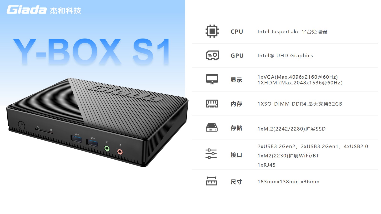 云终端Y-BOX S1搭载低功耗N5905处理器,TDP为15W,支持4核心 4线程,睿频频率最高可达2.9 GHz,配备无人值守JAHC,智能管理开关机,超低能耗,大大节约运营成本和电力成本。