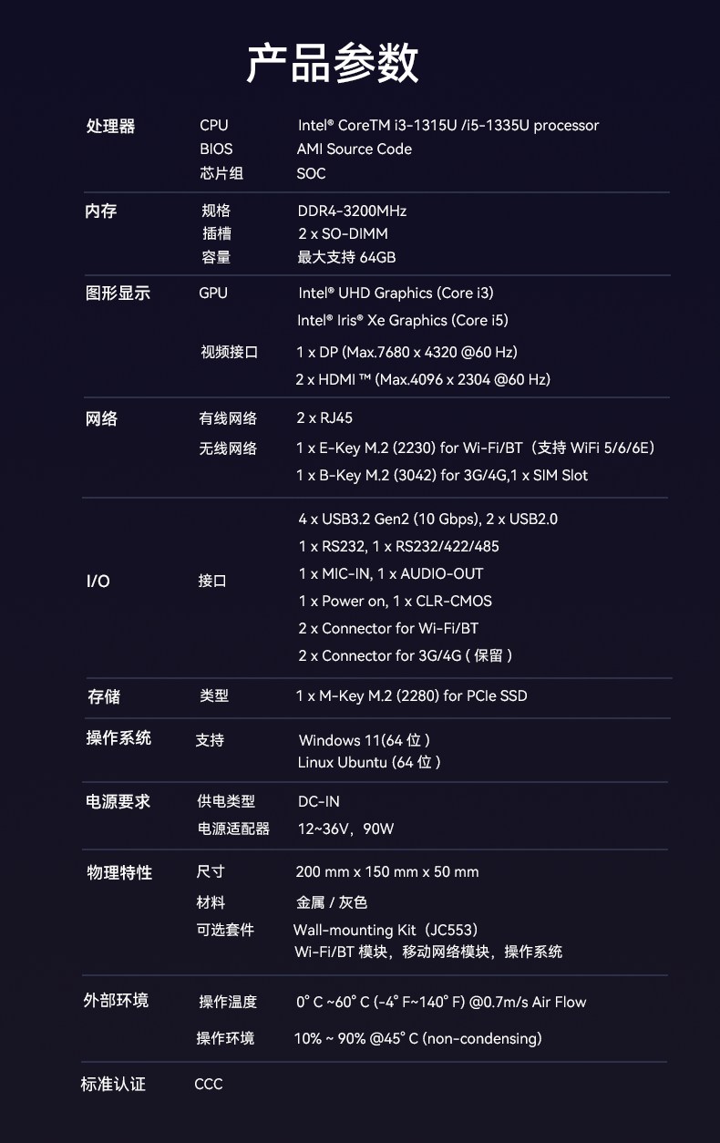 2、开发2个USB 3.2 Gen2接口,2个COM口,2个USB 3.2 Gen2和2个USB 2.0接口以及一个Mic-in和 Audio out音频接口,增加了设备的连接灵活性和通用性,方便与各种交通设备(如摄像头、传感器、刷卡机、站节屏等)进行数据传输和通信;2个千兆网口能实现交通监控系统、智能交通系统等对网络通信的要求;