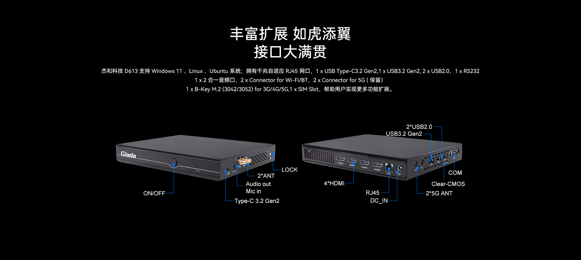 1 x B-Key M.2 (3042/3052) for 3G/4G/5G